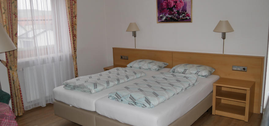 befinden sich zwei trennbare Boxspringbetten und eine